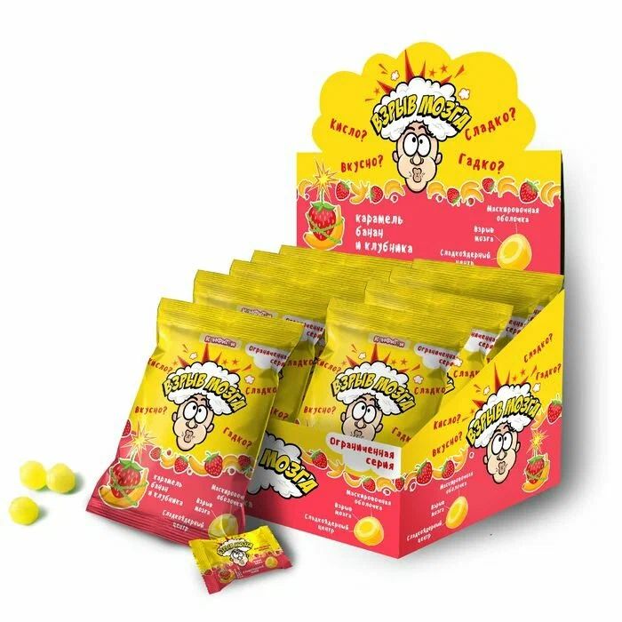 Конфеты Взрыв Мозга суперкислые Банан и Клубника 15 гр