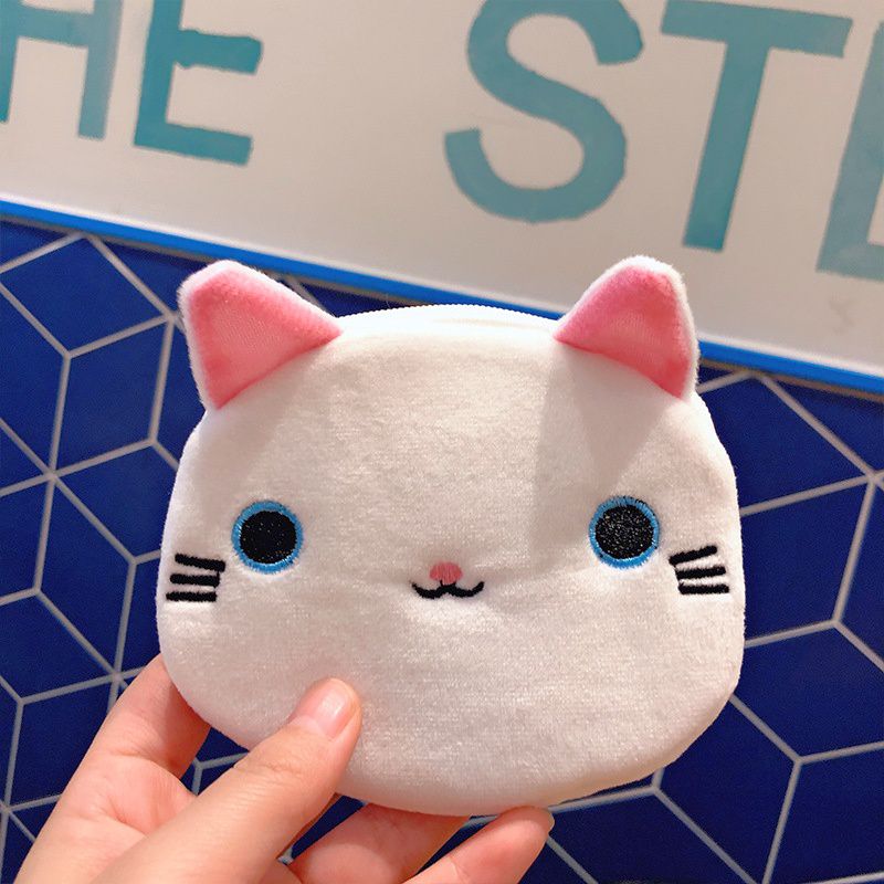 Небольшой плюшевый кошелек в виде белой кошачей мордочки.