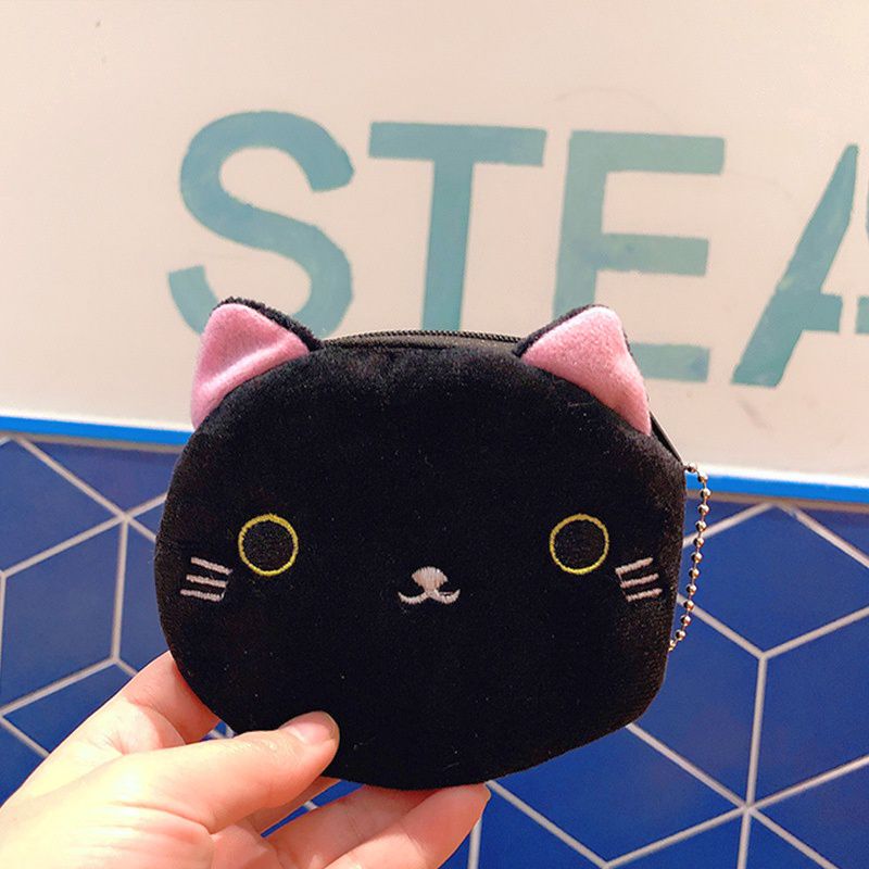 Небольшой плюшевый кошелек в виде черной кошачей мордочки.