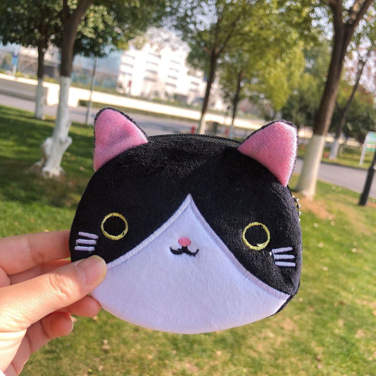 Небольшой плюшевый кошелек в виде черно-белой кошачей мордочки.