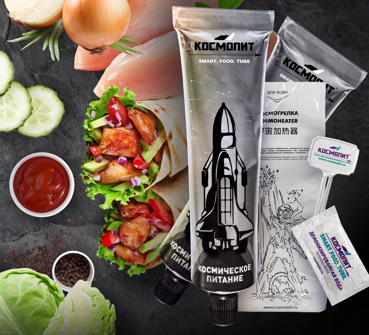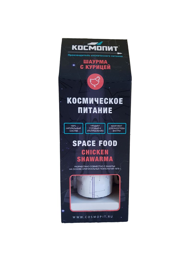 Шаурма с курицей – для любителей этого блюда мы поместили настоящую шаурму с курицей в тюбик, теперь есть уникальная возможность лакомиться любимым блюдом в любое время года (особенно летом) без боязни получить расстройство желудка, покупая это блюдо в палатках с сомнительной санитарией. Космические технологии производства всегда гарантируют отличный вкус и безопасность продукта.