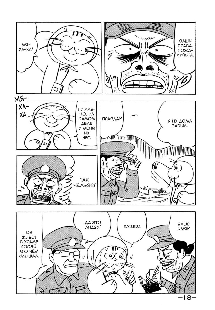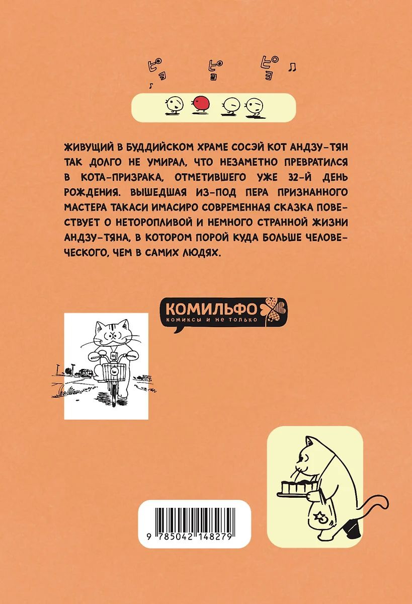 Живущий в буддийском храме Сосэй кот Андзу-тян так долго не умирал, что незаметно превратился в кота-призрака, отметившего уже 32-й день рождения. Вышедшая из-под пера признанного мастера Такаси Имасиро современная сказка повествует о неторопливой и немного странной жизни Андзу-тяна, в котором порой куда больше человеческого, чем в самих людях. В 2024-м году манга получила одноимённую экранизацию.