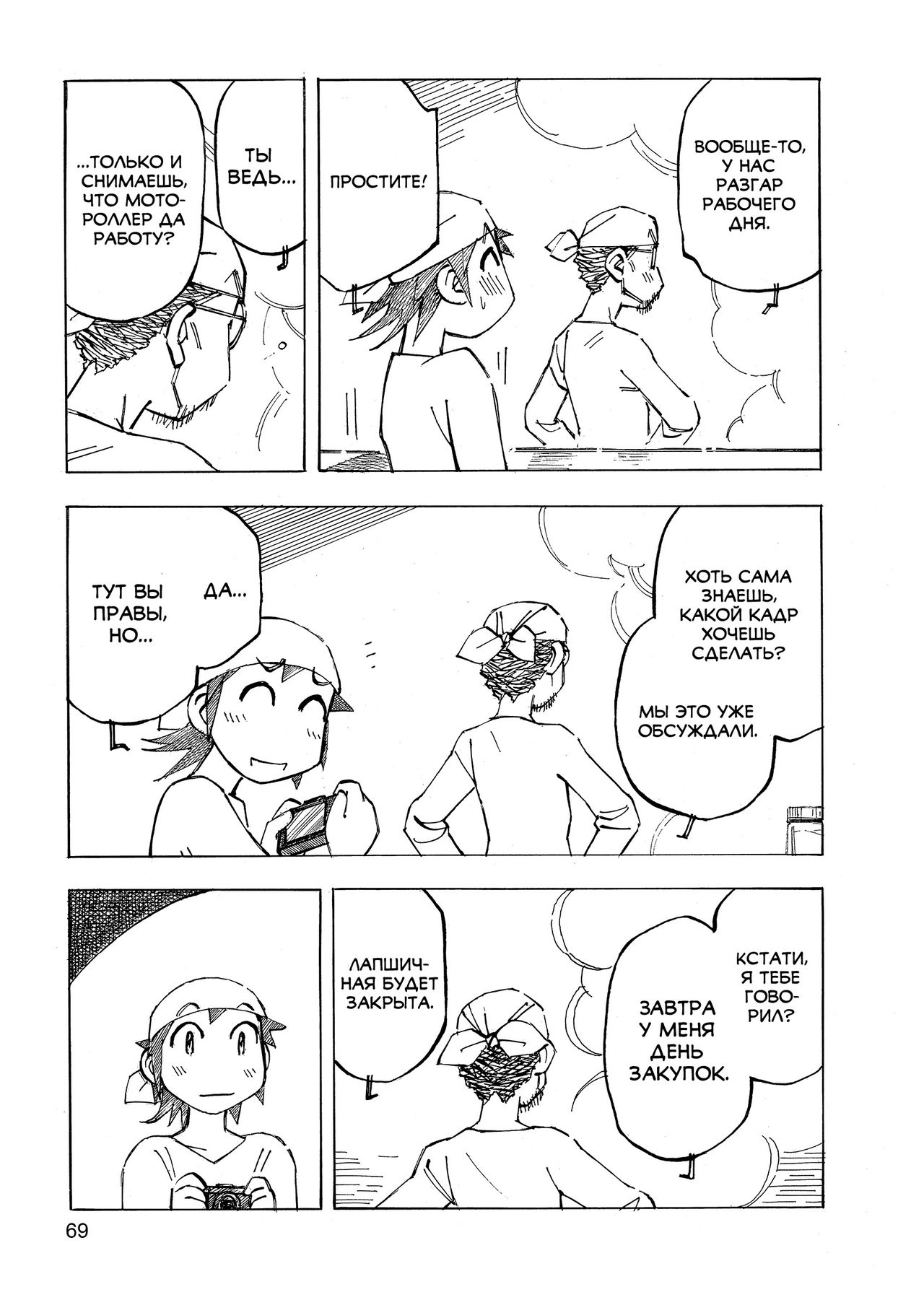 Девушка по имени Суу работает в небольшой лапшичной вместе с нарочито строгим шефом, который на самом деле в своей подопечной души не чает. Они готовят незамысловатые блюда итальянской кухни, а когда посетителей нет, ведут задушевные разговоры. После смены Суу садится на свой любимый мотороллер и отправляется исследовать окрестности. Почти в каждой поездке её ждут таинственные встречи, которые обычно длятся не более пяти минут.