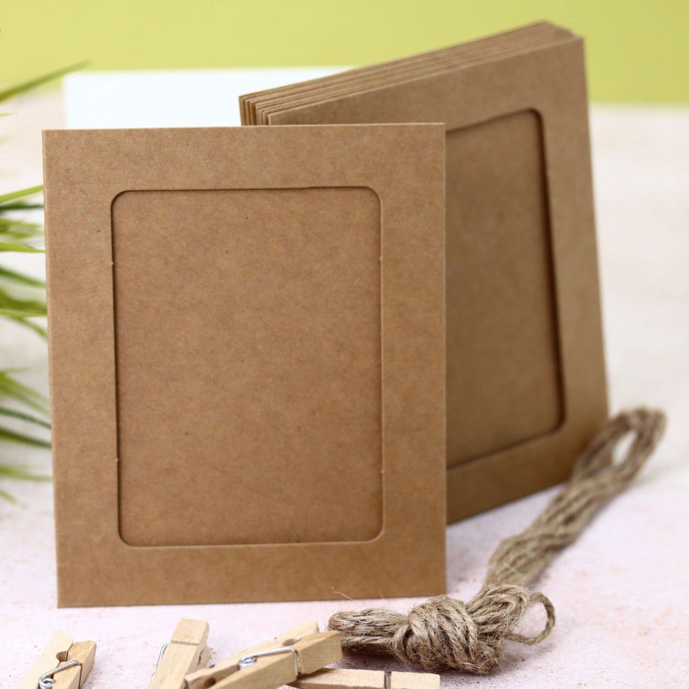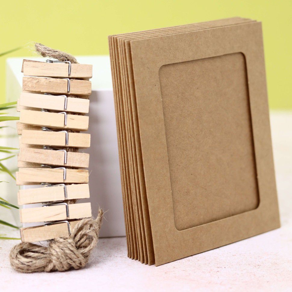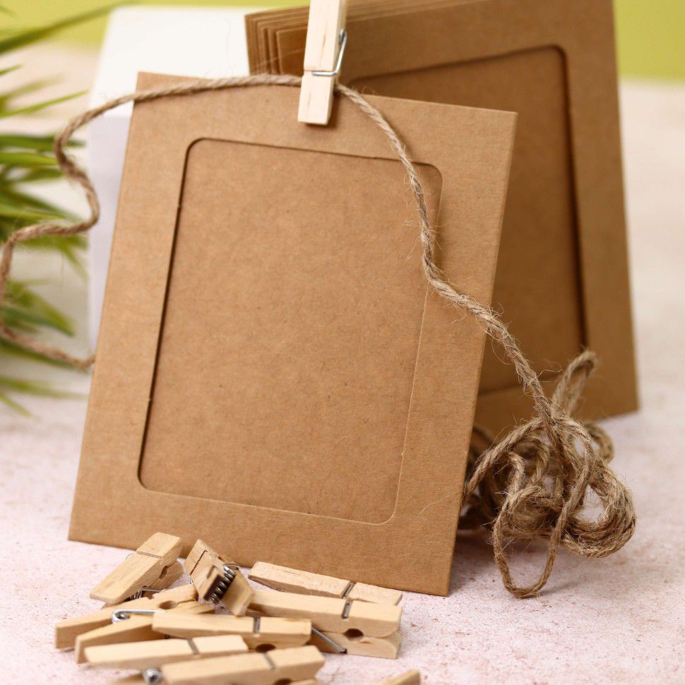 Набор из 10 крафтовых фоторамок с прищепками и джутом-бичёвкой в комплекте! Хороший способ вывесить фотографии с Instax а также распечатанные на обычном принтере. Так как плотный картон у фоторамки не даст уголкам фотографии начать загинаться со временем