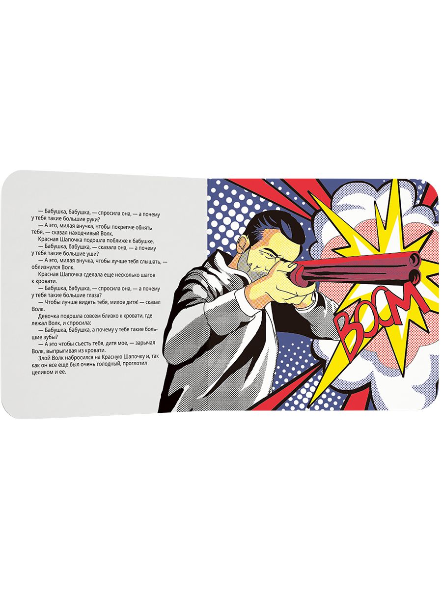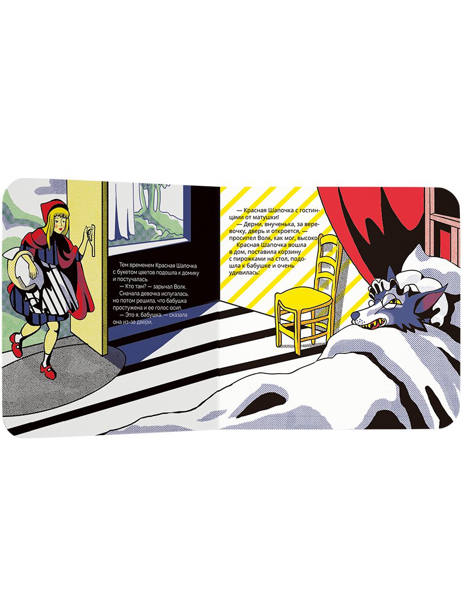 Новая серия издательства VoiceBook- любимые сказки, проиллюстрированные в манере письма известных художников. История о Красной Шапочке в новой книге – это сказка, проиллюстрированная через призму стиля поп-арт и его знаменитых идеологов – Энди Уорхола и Роя Лихтенштейна.