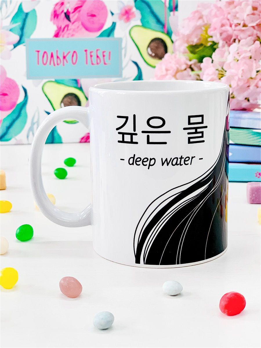 Черно-белая тема этой кружки добавляет ей загадочности, и невероятна красивая девушка припитывает принт эмоциями