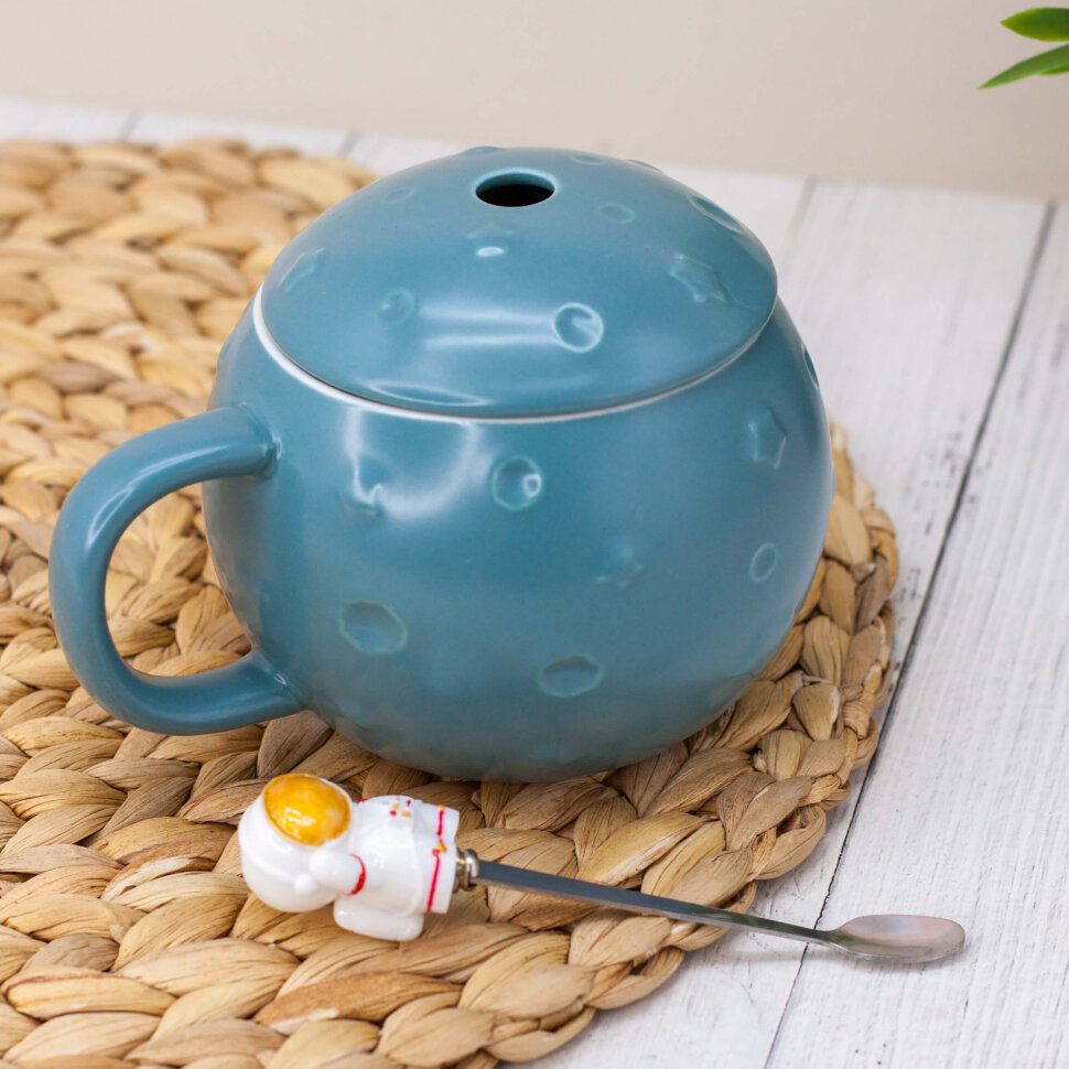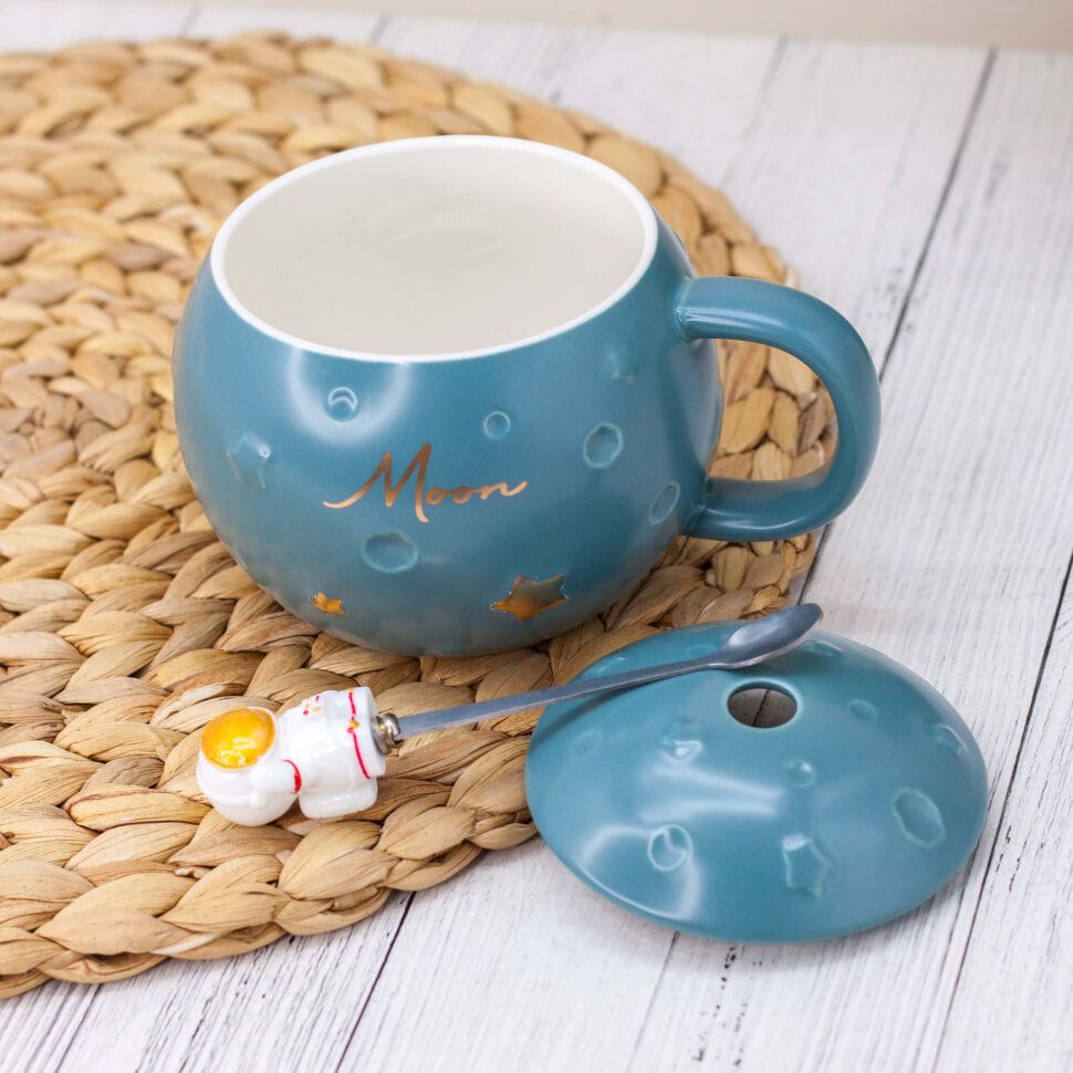 Милая кружка в форме трехмерной луны с космонавтом-ложечкой!