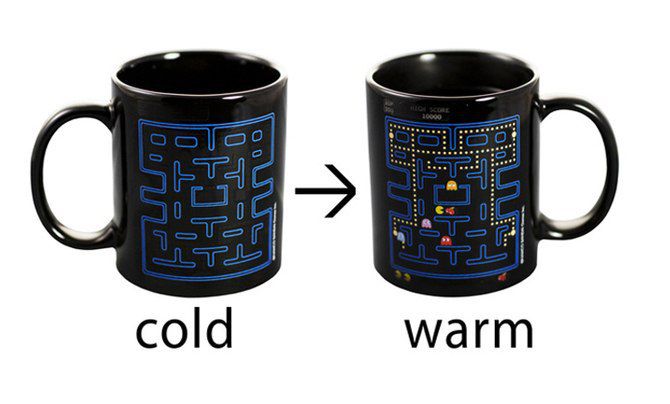 Кружка Пакмен меняет цвет при добавлении горячей жидкости. Вместо черного фона появляются Приведения и сам Пакмен!