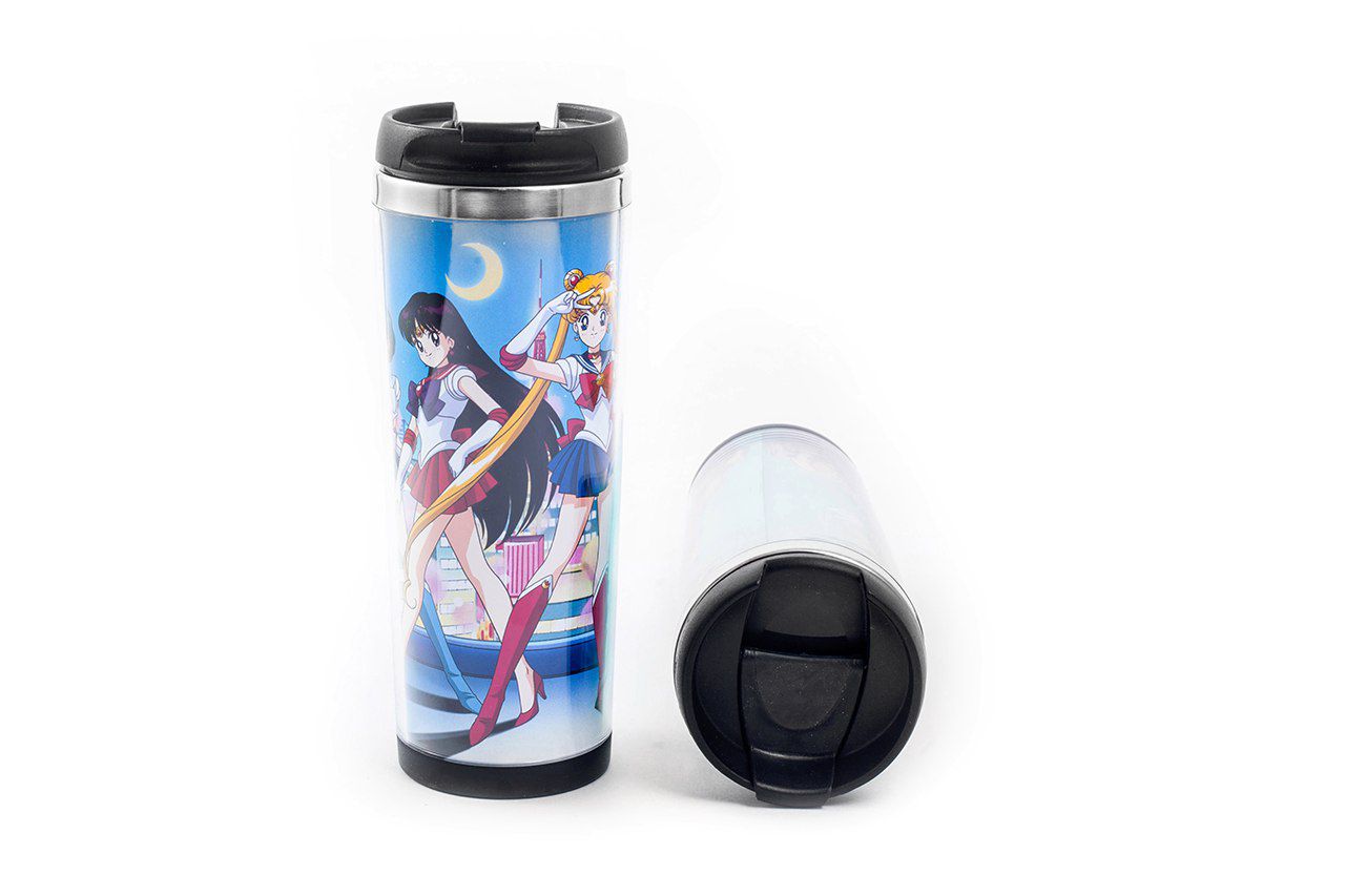 Термокружка с очаровательными Войнами в матросках. Тамблер сохраняет тепло на протяжении 3-5 часов благодаря двойной стенке.