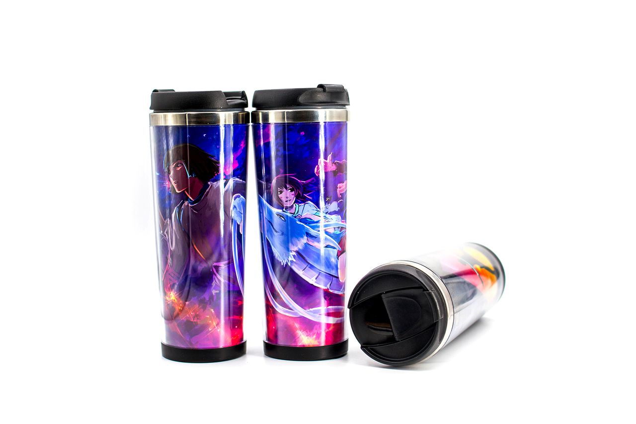 Термокружка с персонажами культового аниме "Унесенные призраками" Хаяо Миядзаки. Тамблер сохраняет тепло на протяжении 3-5 часов благодаря двойной стенке.