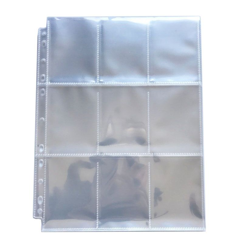 Лист для биндера с кармашками. Идеально подходит для хранения почти всех типов карточек и карточных игр. Лист изготовлен из прозрачного материала, на каждой стороне листа расположены кармашки для карт, вмещающие 18 карт. В каждом наборе 10 листов.