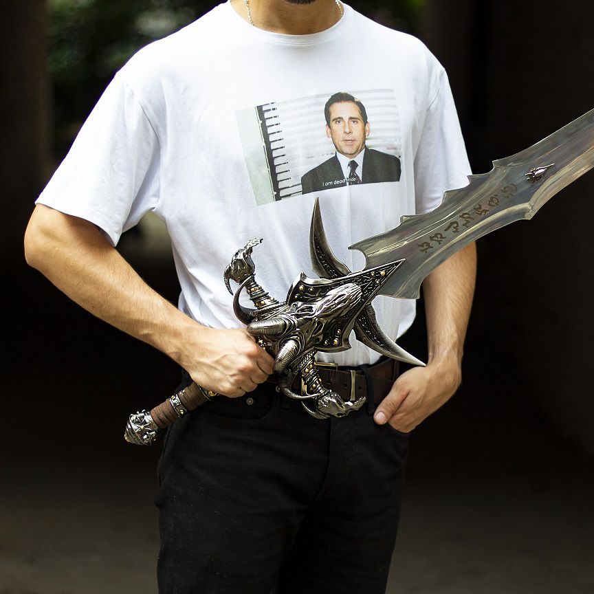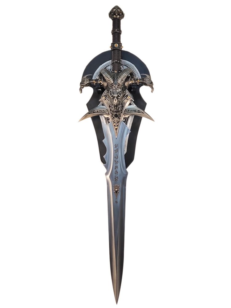 Легендарный меч Короля Лича – Фростморн, или в русском переводе «Ледяна скорбь», по праву считается одним из самых могущественных и прославленных клинков на просторах Азерота. Теперь у вас есть уникальный шанс заполучить максимально аутентичную реплику, отлитую из настоящего сплава металлов по оригинальным чертежам гейм дизайнеров Blizzard. Меч упакован в цветную коробку с изображением Короля Лича. В силу особенностей доставки и веса самого меча коробка не всегда приходит в идеальном состоянии. Но это никак не сказывается на мече :)