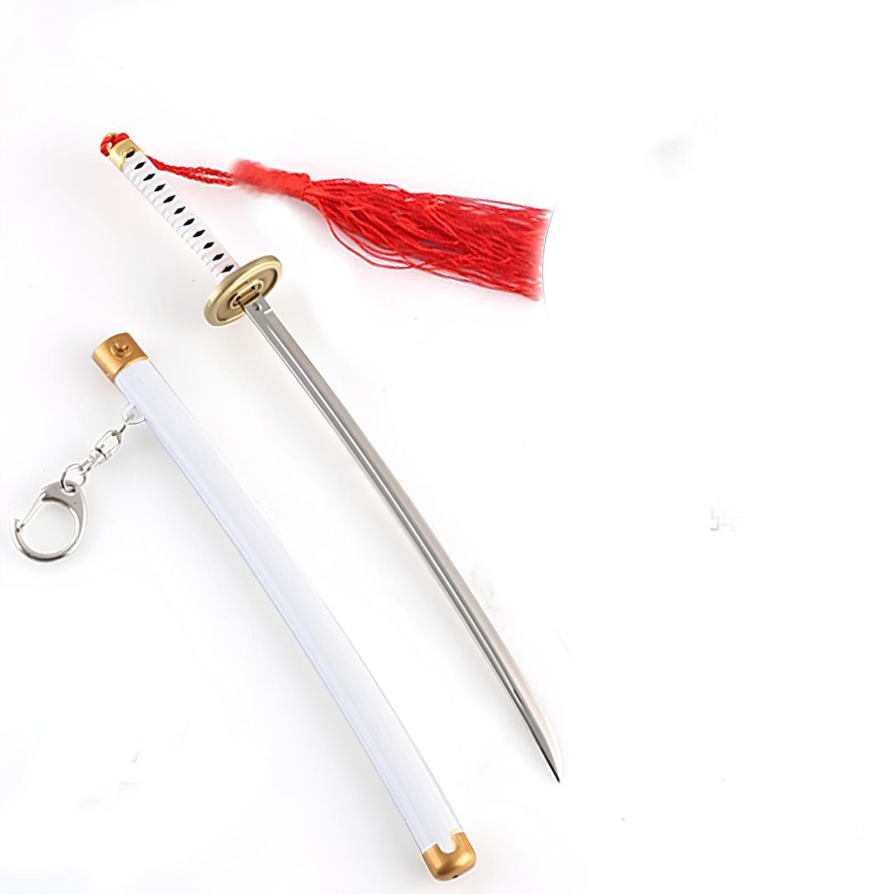 Катана Ророноа Зоро, выполненная в форме мини-реплики. Ножны в комплекте. Катана легко достаётся из ножен за счет механизма.