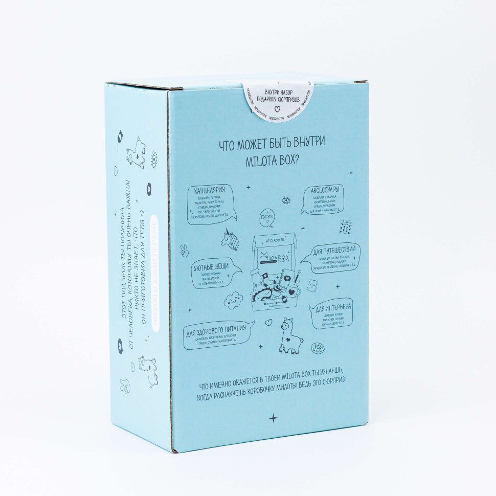 Каждая коробочка милоты наполнена необычными вещицами, которыми будет приятно пользоваться в повседневной жизни: милая канцелярия, уютные товары для дома, стильные аксессуары, предметы для здорового образа жизни и приятные мелочи. Наполнение MilotaBox стало ещё лучше! Больше подарков! Внутри каждого MilotaBox находится до 13 предметов на одну тематику, упакованных в стилизованную бумагу тишью. Коробочка из плотного, дизайнерского картона.