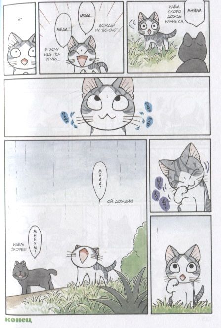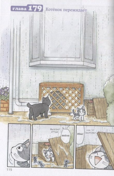 Не желая расставаться с Коччи ни на минуту, Чи приводит друга в гости. Но правила её семьи совсем не подходят свободолюбивому котёнку – разбойник так и рвётся на волю. А вот Чи, наоборот, поняла, что нет места лучше родного дома, где можно сладко поспать в тепле и уюте. Но почему Чи так отличается от папы, мамы и даже Ёхэя? Ни у кого из них нет хвостика и треугольных ушек... Неужели они ей не родня? А кто тогда?