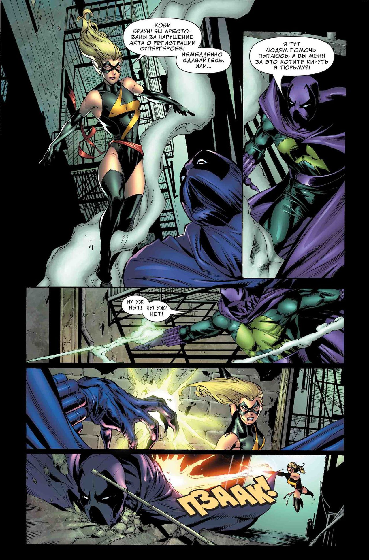 Гражданская война расколола общество супергероев, и Кэрол Дэнверс вынуждена содействовать осуществлению нового Акта о регистрации сверхлюдей, дабы избежать заключения. Кэрол сражается с бывшими союзниками Саваном и Арахной, защищая закон, с которым, возможно, даже не согласна, но сможет ли она разлучить семью, делая то, что считает правильным? А также: Мисс Марвел и Шельма должны забыть о разногласиях, ведь появилась другая Кэрол, зовущая себя Птицей Войны! И она пытается отомстить Шельме! И наконец: когда мальчик, обладающий способностью превращать сны в реальность, прочтёт вслух автобиографический рассказ Кэрол, Мисс Марвел вновь станет космическим героем по прозвищу Бинар!