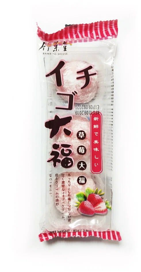 Традиционный десерт азиатских стран - моти. Пирожное из рисовой муки с клубничной начинкой