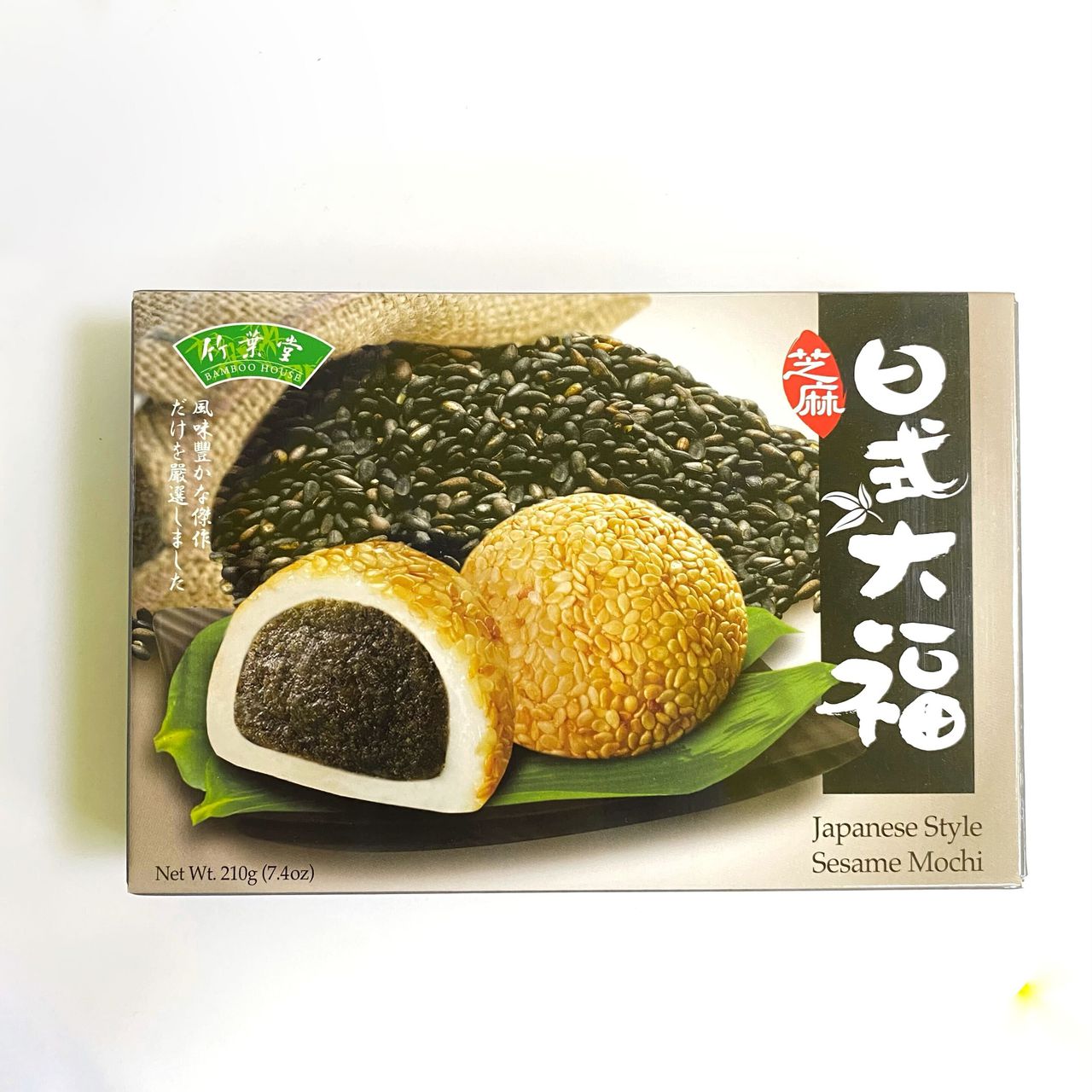 Моти Черный кунжут приготовлены из рисового теста с добавлением жженого сахара, начинка - паста из черного кунжута, покрыты соевой пудрой. Отличаются очень нежной текстурой и сладким, ярко выраженным вкусом кунжута!