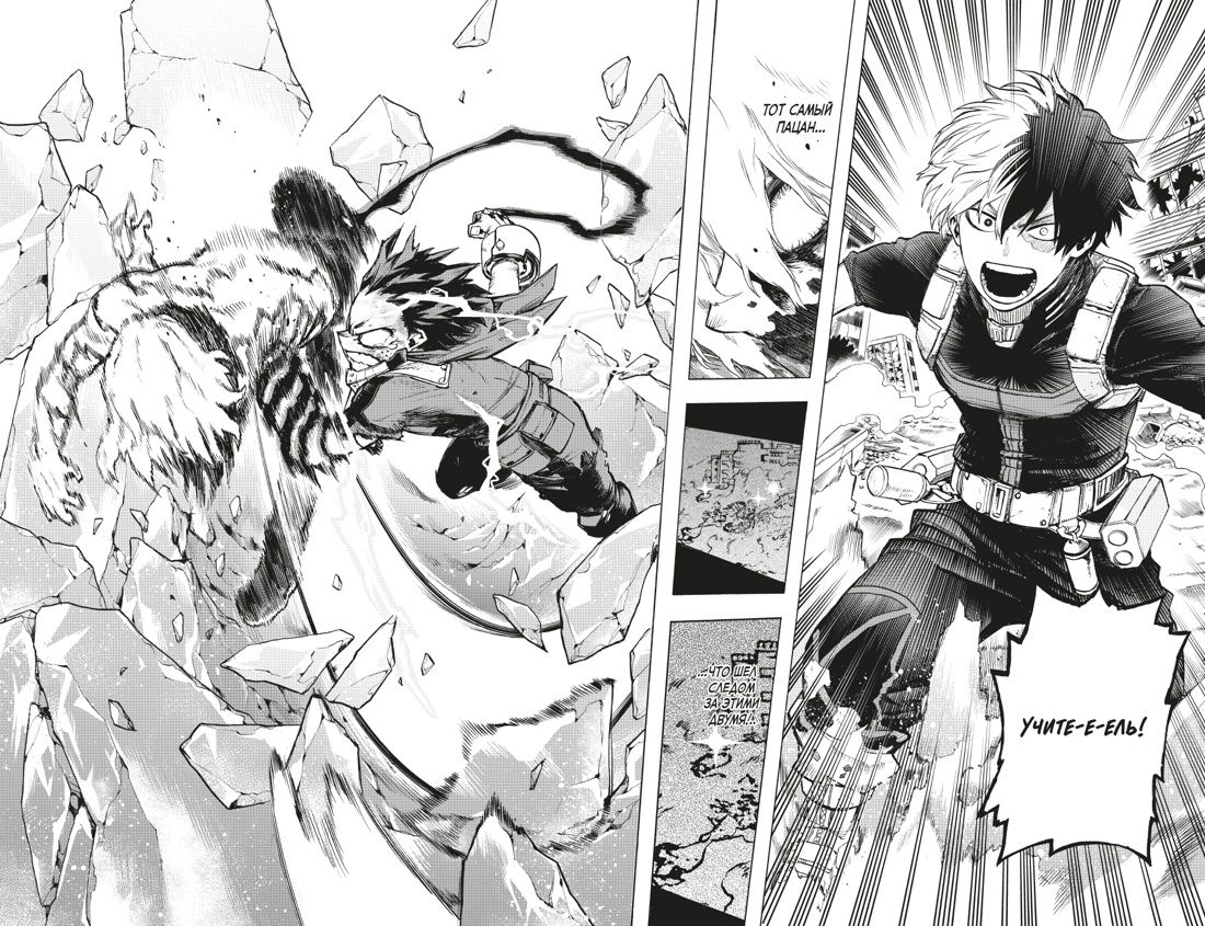 Несмотря на предостережение Гран-Торино, Мидория все же бросается на помощь учителю Айдзаве, сдерживающему Сигараки силой своей причуды. А ученики академии Юэй пытаются остановить Махию, который спешит на зов своего хозяина. Некоторые профи в попытках одолеть громилу уже выбыли из строя, так что задача у юных героев не из легких: закинуть в пасть злодею капсулу с анестетиком и при этом остаться в живых. Большая битва в самом разгаре... Так кто же выйдет из нее победителем?