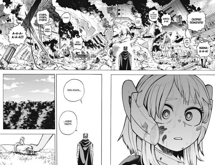 Сигараки с частью приспешников ретировался с поля боя, оставив за спиной колоссальные разрушения. Однако на этом его злодеяния не прекратились. Прорвавшись в тюрьму строгого режима Сигараки, разум которого находился под контролем Всех За Одного, выпустил из камер уйму опасных преступников, наказав им зверствовать в свое удовольствие. После чего исчез с геройских радаров. Тем временем раненые Неукротимый, Тодороки, Бакуго и другие участники битвы начали приходить в себя и осознавать произошедшее. И только Мидория не торопился пробуждаться, ведь его ждал серьезный разговор со своими предшественниками…