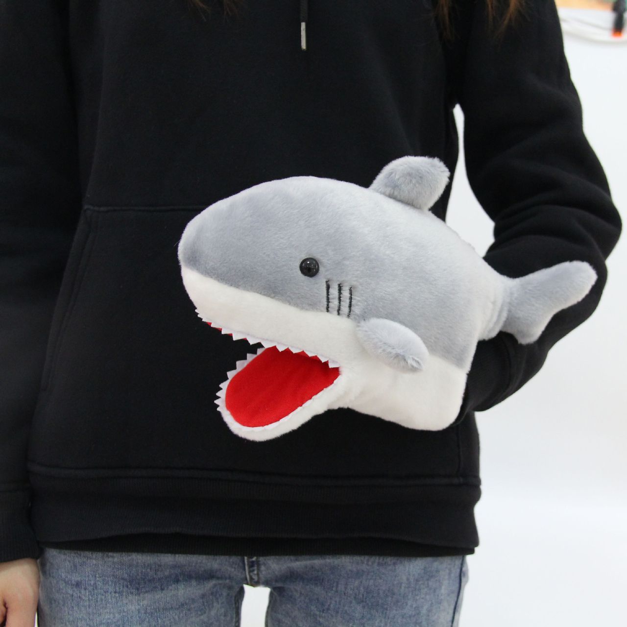 Милая плюшевая игрушка акулы, которую можно надеть на руку - устроить свой кукольный театр и переснять "Челюсти" Спилберга :)