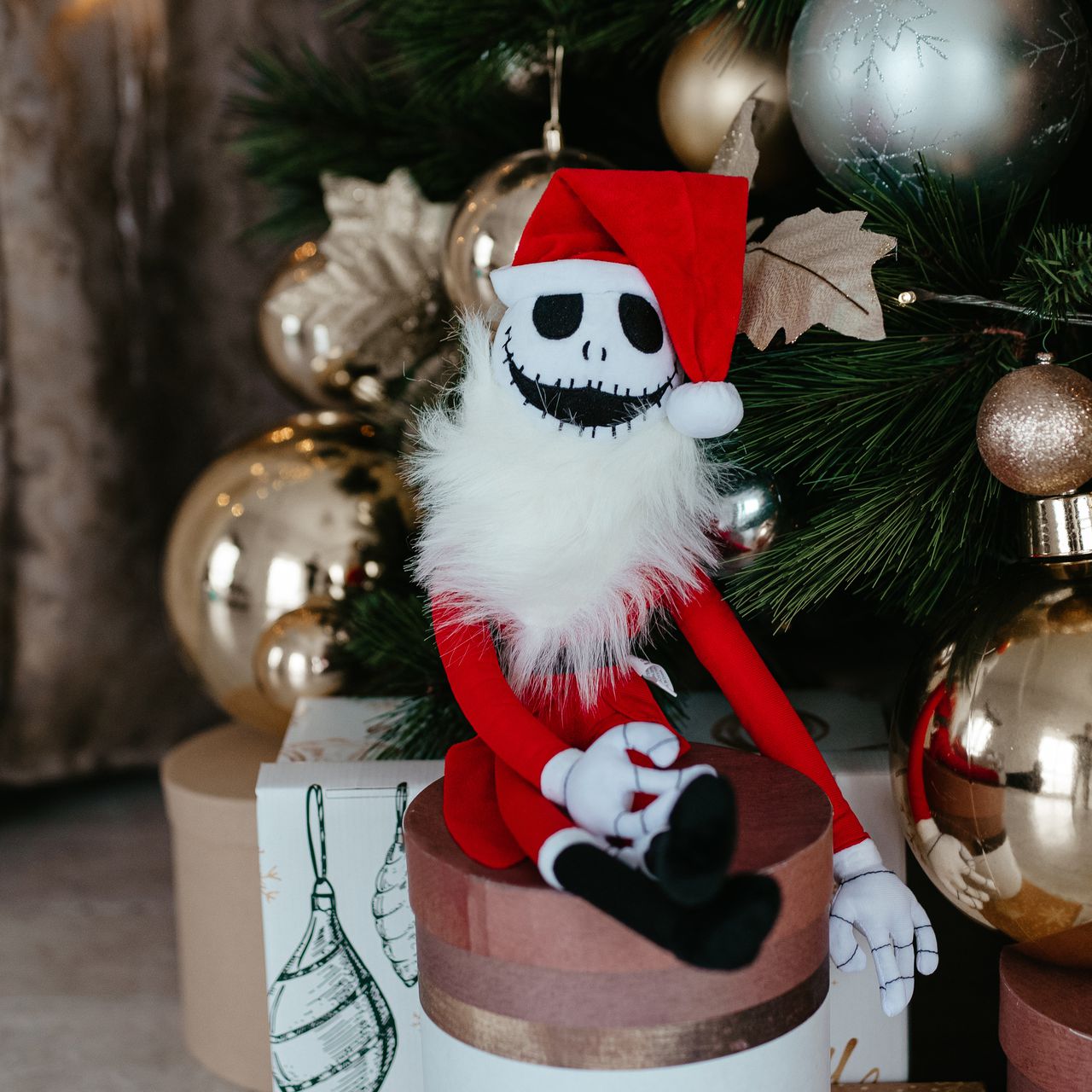 Игрушка фантазирует на тему образа Джека в классическом костюме Санты, выглядит очень свежо и необычно!