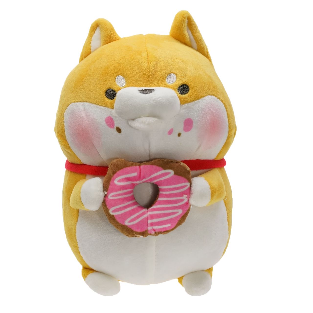Пёсик Сиба Ину с пончиком - мягкая игрушка высотой 22 см с присоской.