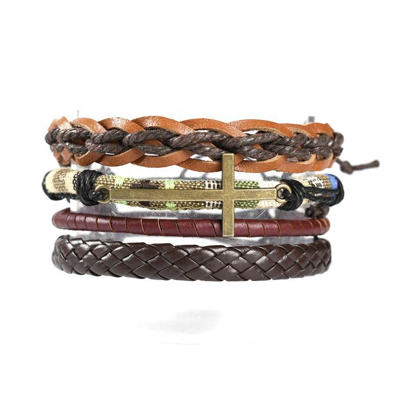 В наборе 4 браслета. Размер браслетов из искусственной кожи регулируется с помощью затяжек.