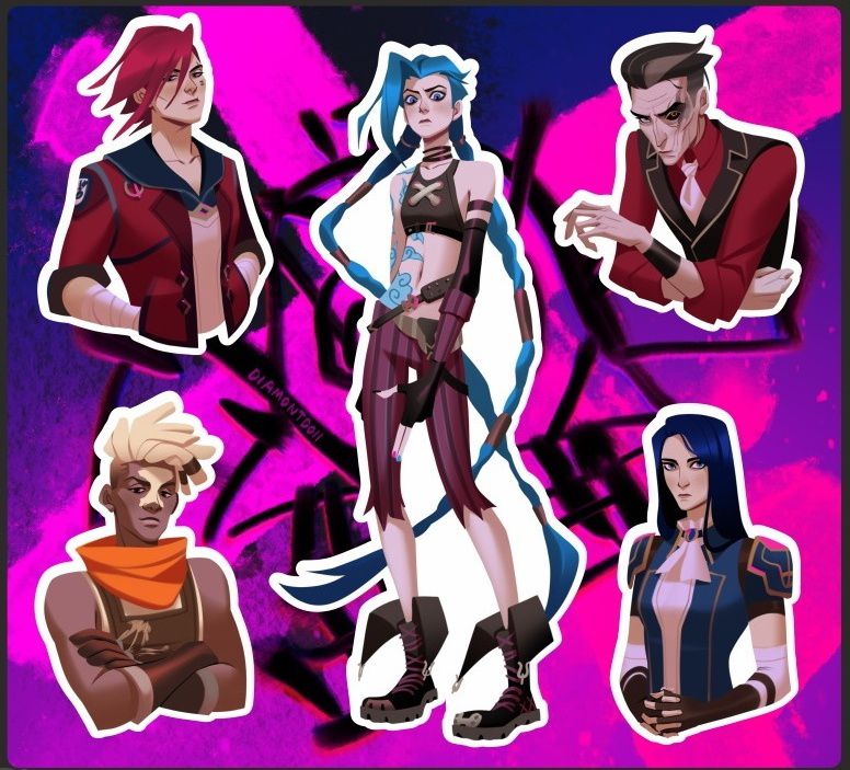 Набор стикеров с персонажами Аркейн. Укрась свой ноутбук, телефон или скейтборд.