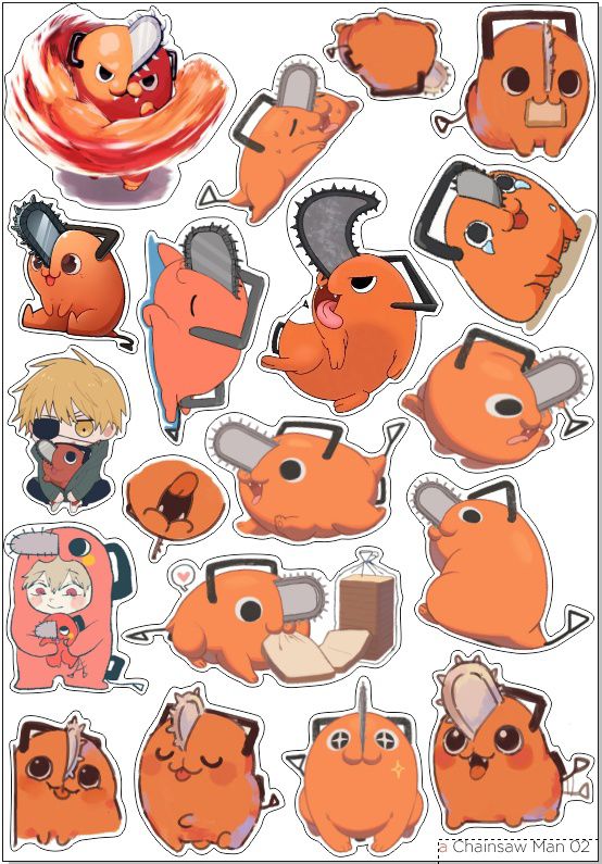 Лист наклеек с Почитой из аниме Человек-Бензопила!