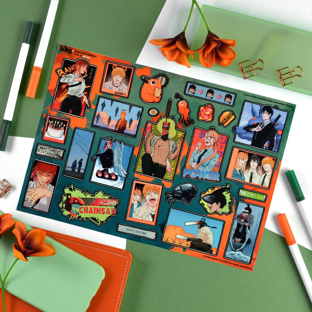 Набор стикеров Человек-Бензопила (Chainsaw Man) No kid's A4