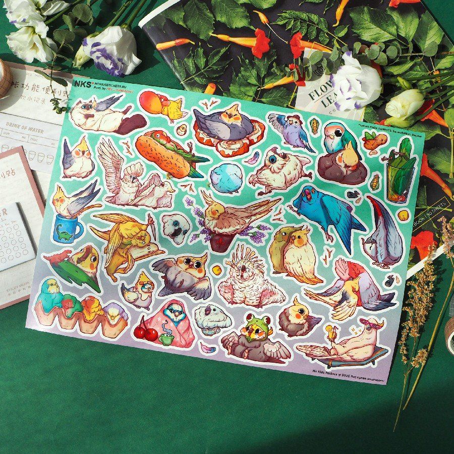 Набор стикеров Попугаи
