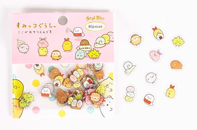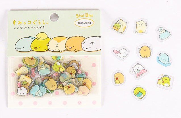 Набор забавных наклеек с различными животными и существами. В одном наборе 80 наклеек размером примерно 1 см.