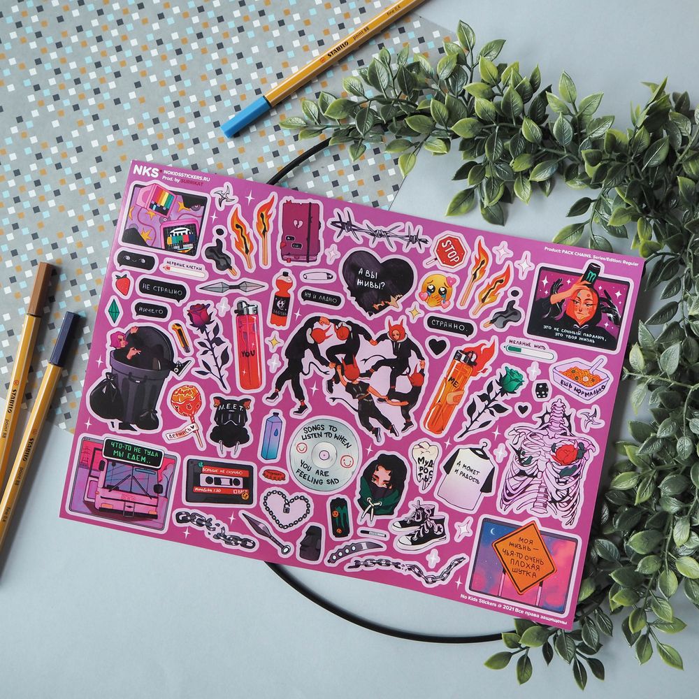 Сегодня — про цепи. Нет, не обязательно те, что вы носите на джинсах в качестве аксессуара или тех, что болтаются на шее, чтобы дополнить образ. Это скорее про те цепи, что сковывают вас изнутри — депрессия, личностный кризис, невзаимная любовь, проблемы со здоровьем и другие «прелести» жизни. Иногда цепи стоит ломать, иногда — учиться с ними жить. В любом случае, такой близкий по духу пак поможет отразить внутреннее состояние внешней декорацией своих любимых гаджетов, дисков, скетчбуков и коллекции баночек из-под газировок и энергетиков.