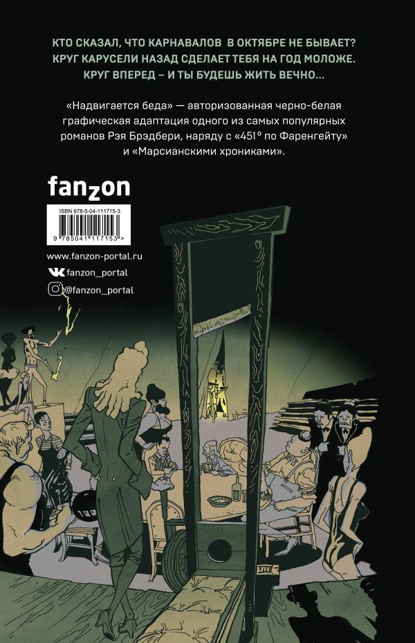 Зеркальные лабиринты и плачущие училки, потерянные саквояжи и пропавшие продавцы, танцующие татуировки и сломанные карусели… Здесь оживают детские страхи. И самые безумные, несбыточные мечты. Может быть, карнавал питается ядом горчайших сожалений и злом наших грехов. Но его никак нельзя пропустить. "Надвигается беда" — авторизованная черно-белая графическая адаптация одного из самых популярных романов Рэя Брэдбери, наряду с "451 градус по Фаренгейту" и "Марсианские хроники".