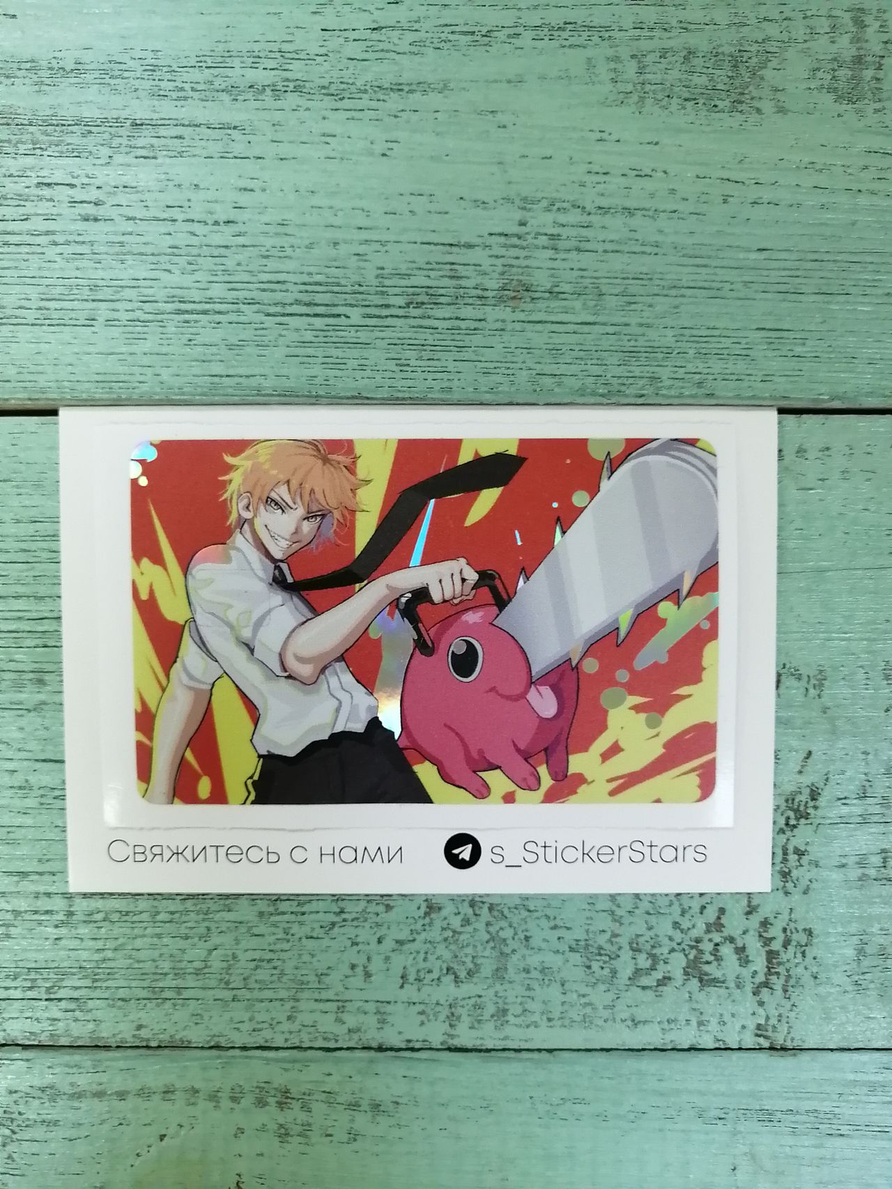 Наклейка на банковскую карту Человек-Бензопила - Дэнджи и Почита (Chainsaw Man) StickerStars