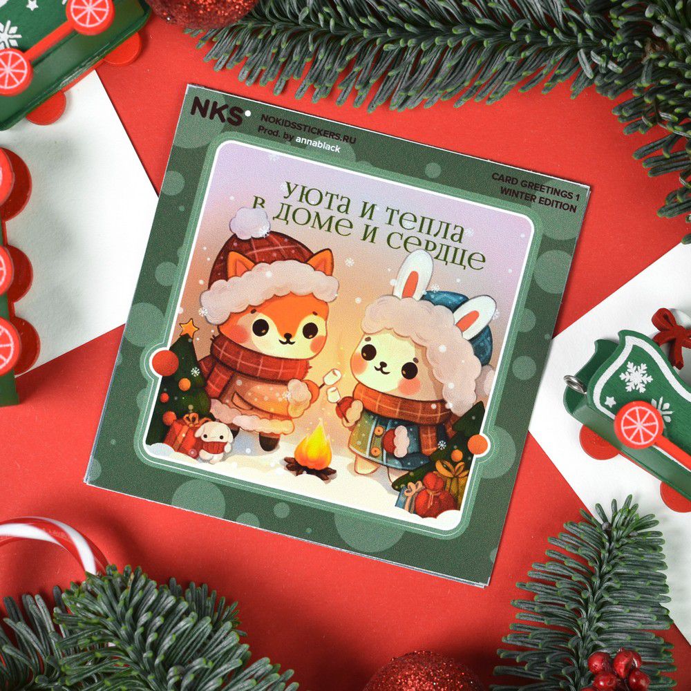 Наклейка Новогодняя - Уюта и тепла в доме, стикер NKS card