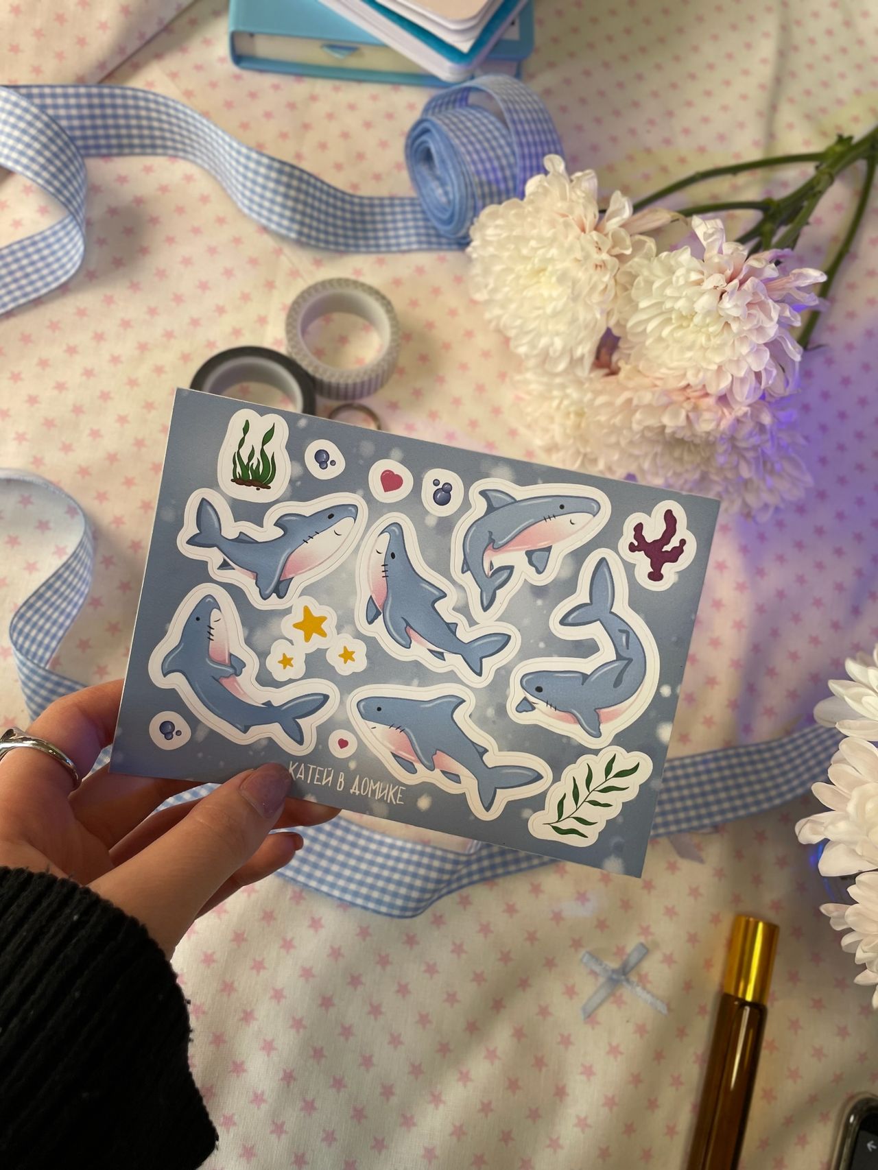 Наклейки Акулки, стикеры А6 Катей в домике