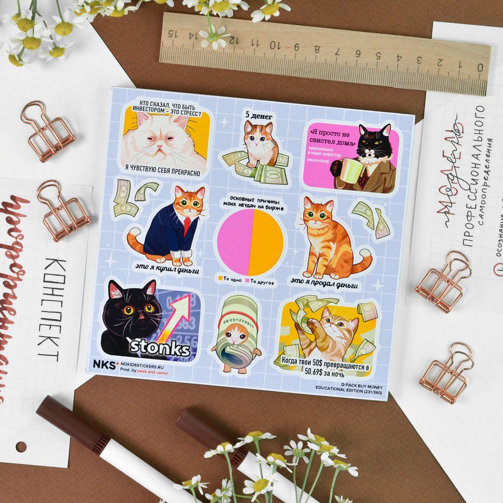 Наклейки Котики и деньги, стикеры NKS Q-Pack