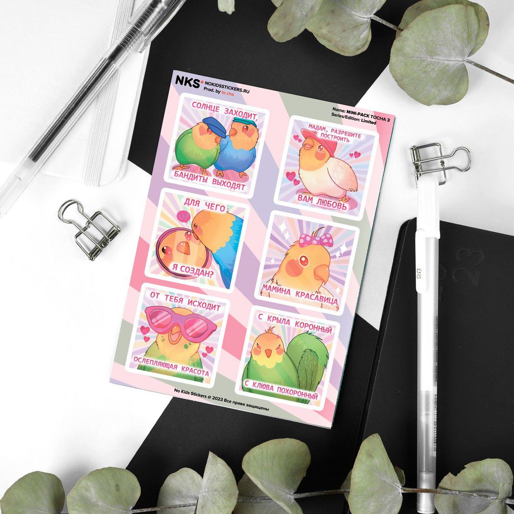 Наклейки Милые Попугаи, стикеры NKS Mini