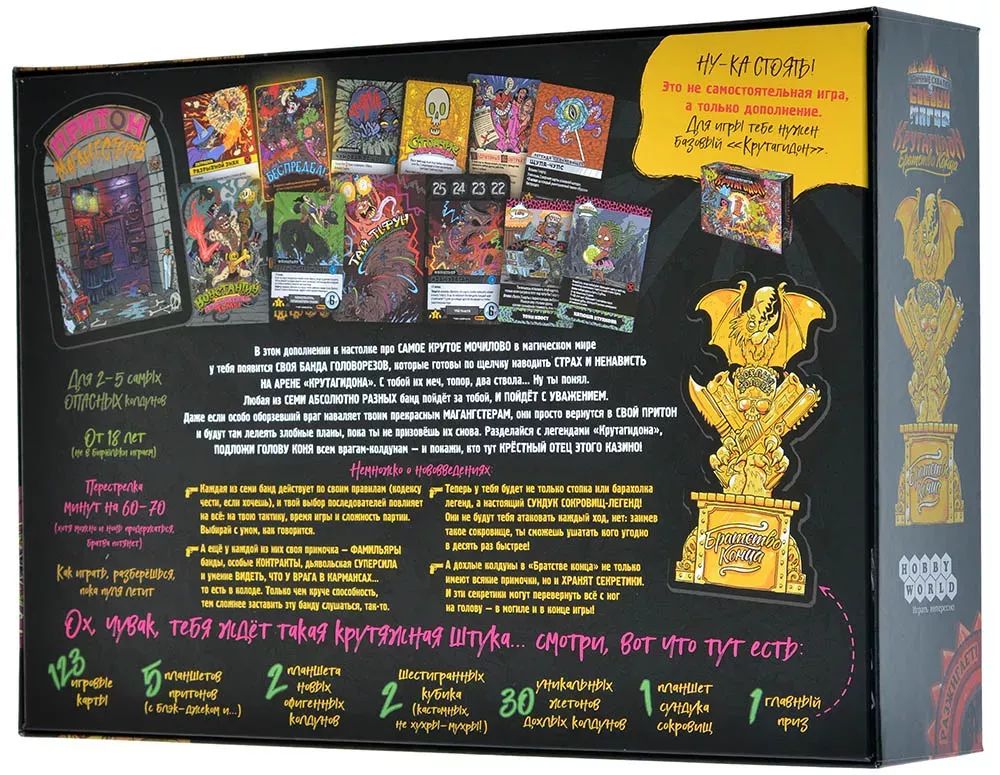 Внимание! Это дополнение. Для игры вам понадобится базовая версия "Эпичные схватки боевых магов: Крутагидон". Или, если вы достаточно смекалисты, можете взять за основу "Экстремально острый чипсихоз", но в таком случае некоторые правила взаимодействия могут быть неочевидны.