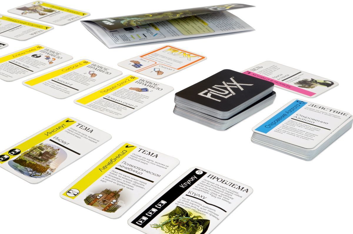 Настольная игра «Fluxx Ктулху» — лучшее средство, чтобы преодолеть безысходность. Тяни карту, играй карту, прикрывайся Знаком Древних и охоться на пингвинов и шогготов на Хребтах Безумия… Но вот правила поменялись, и только вовремя пробудившийся Йог-Сотот принесёт тебе победу. И гибель всему человечеству — за компанию!
