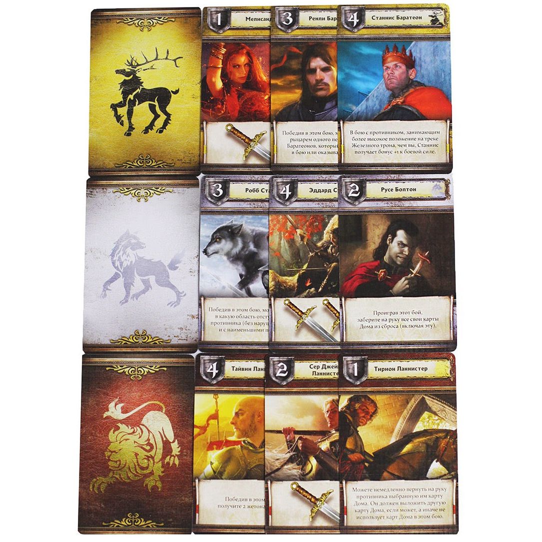 Суть настольной игры «Игра Престолов (Второе издание)» предельно проста – заполучить заветный Железный Трон. События разворачиваются аккурат после подозрительной смерти Роберта Баратеона, и каждый игрок может выбрать любой из предложенных Домов, и побороться за власть над Семью Королевствами.