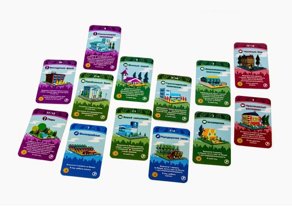 Настольная игра "Мачи Коро" – игра для 2-5 игроков, которые хотят окунуться в уютную Японию. Вы берёте на себя роль мэра маленького, но амбициозного городка. Как мэр, который любит свой город, вы хотите его процветания и развития. Стройте закусочные и аэропорты, украшайте улочки садами и достопримечательностями, а результат не заставит себя долго ждать. Но не забывайте, что близлежащие городки тоже не стоят на месте, и вам предстоит вступить в нешуточную борьбу за право провозгласить свой город лучшим!