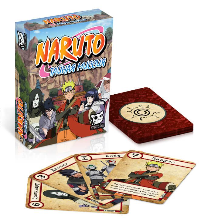 Наруто: Тайная Миссия «Наруто: Тайная Миссия» - настольная карточная игра на удачу, решительность и дедукцию.Коноха в опасности! Одни хотят ее уничтожить, другие - спасти. Кто придет к своей цели первым зависит от вас!