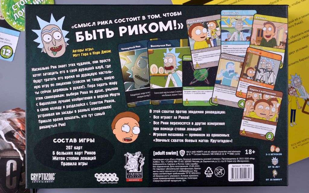 Игроки начинают только со своими волнами гения, но по ходу игры они будут получать новые, более мощные карты в свою колоду. Цель каждого из игроков – победить как можно больше членов Совета Риков (и, конечно же, Злого Рика!).