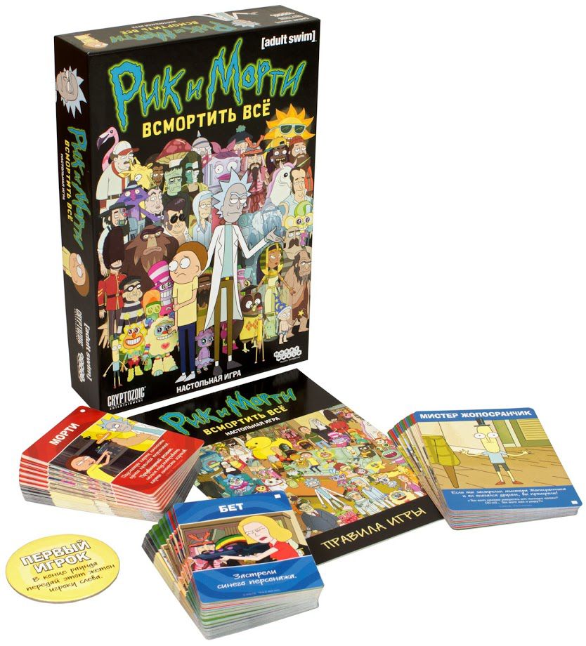 Устали от скучных и банальных настолок? Давно скупили всю недвижимость в монополии, и уже замучились объяснять друг другу слова? Чем заниматься такими глупостями, вы лучше снова посмотрите любимый эпизод сериала «Рик и Морти»? Тогда ловите крышесносный джекпот – настольную игру «Рик и Морти: Всмортить всё»! И навсегда забудьте о скуке, и слитых впустую вечерах. Только безудержное веселье и качественный угар в компании Рика, Морти и других персонажей популярного анимационного сериала!