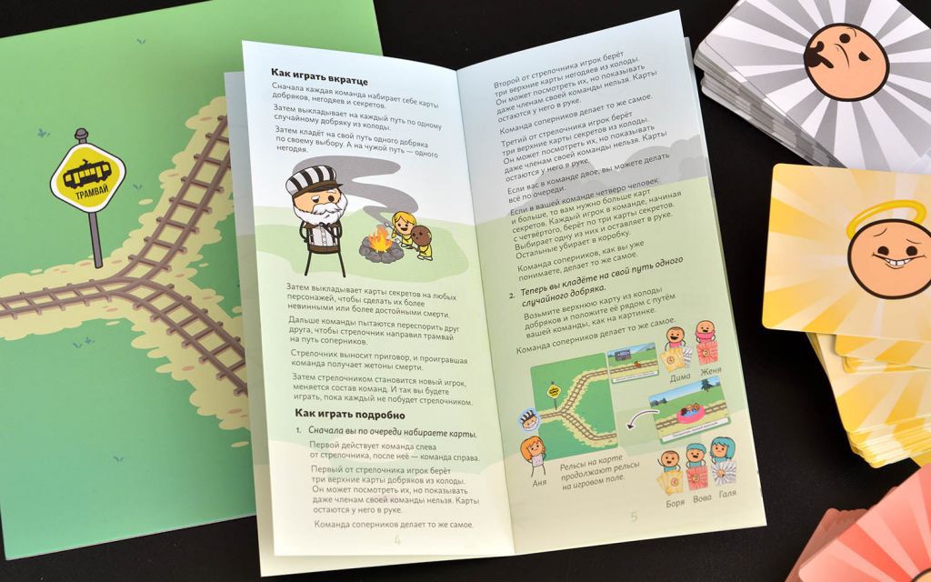 Игроки в настольной игре "Трамвай смерти" делятся на две команды и стрелочника. Участники противоположных отрядов выкладывают на свои пути добряков, негодяев и особый секрет, который может разоблачить хорошего персонажа или оправдать злодея. Когда все персонажи уже на рельсах, команды любыми доводами уговаривают стрелочника пустить состав по дороге следования противника. После того как ведущий выбрал для себя меньшее зло, проигравшие игроки берут жетон смерти. У кого к концу игры их будет меньше всего, тот и победил. Все за игру успеют побывать в роли ведущего. У руля трамвая смерти будет каждый!