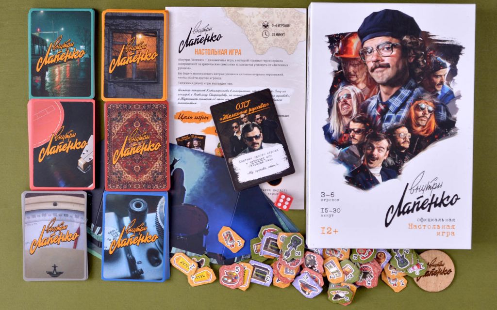 "Внутри Лапенко" – динамичная настольная игра, что порадует поклонников сериала оформлением и множеством отсылок. Для победы нужно к концу шестого раунда набрать больше всех очков Зрительских симпатий. Каждый ход вы будете разыгрывать карты Уловок, чтобы получать преимущества и мешать оппонентам получать очки. Далее предстоит выбрать персонажей – каждый из них обладает уникальной способностью! После этого активируется ОПГ "Железные рукава", которую в ходе раунда можно натравить на того или иного игрока, чтобы те забрали его очки.