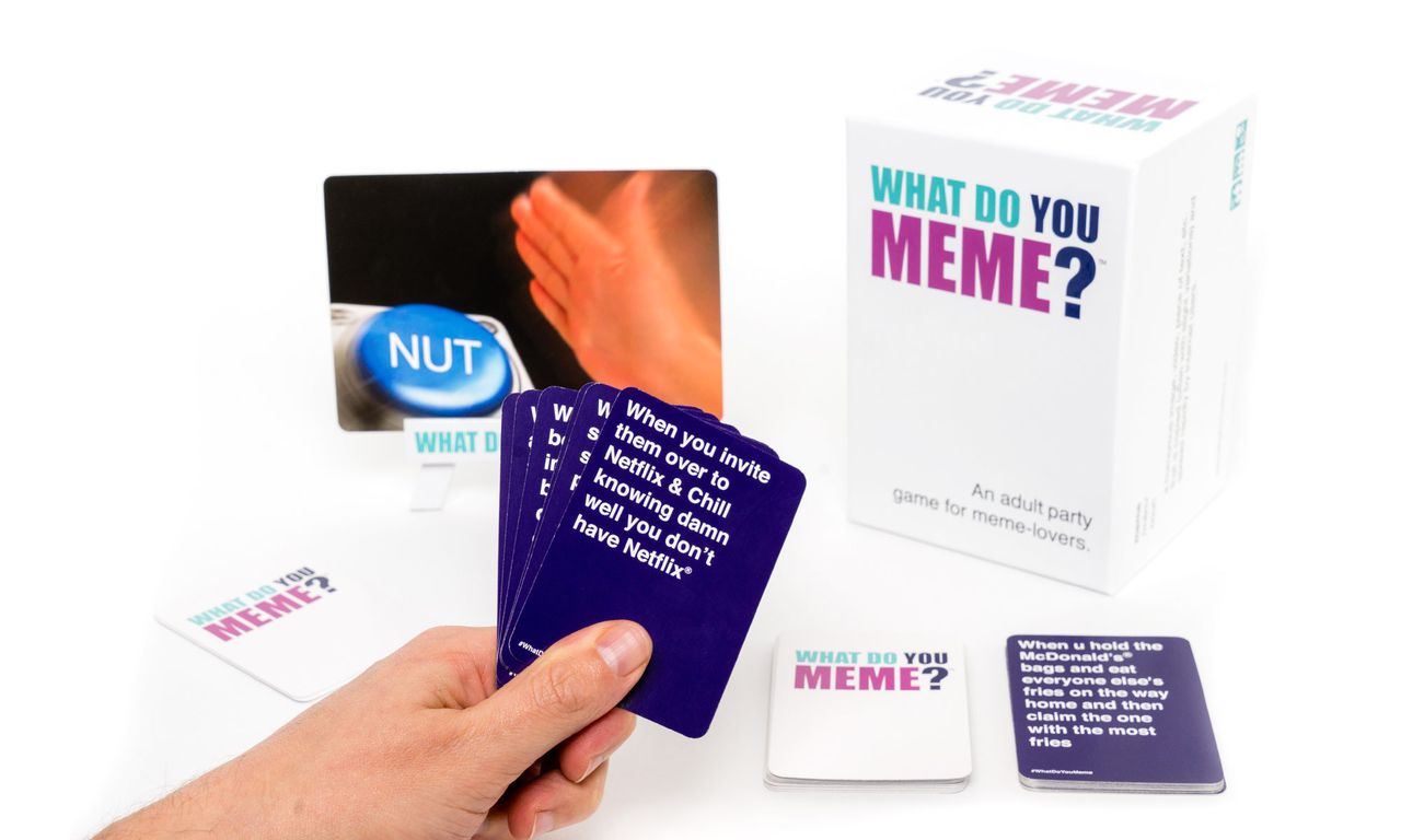 Несправедливо неизвестная в России настольная игра "What Do You Meme?". Очень похоже на "500 злобных карт", только про мемы и с мемами. Выбирается одна фотография-мем и каждый игрок придумывает для нее смешное описание (из тех карт, что у него на руках). Кто смешнее - тот и победил!